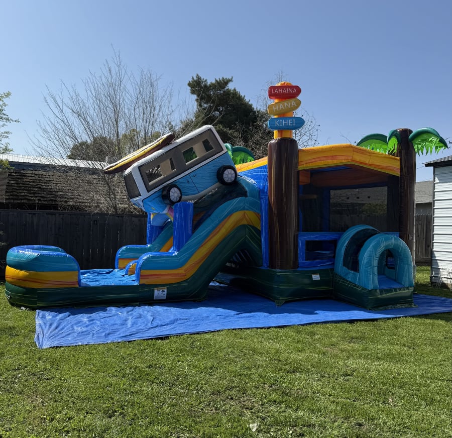 The Beach Camper Dual Lane Combo Wet/dry delivers two lanes of sliding and bouncing action in a beach-themed inflatable. Built for backyard parties, rentals, and event pros, this combo converts from dry play to a wet water slide in minutes. Bright graphics, dual lanes, and versatile wet/dry use make it a top pick for summers and year-round entertainment. 💦🎉