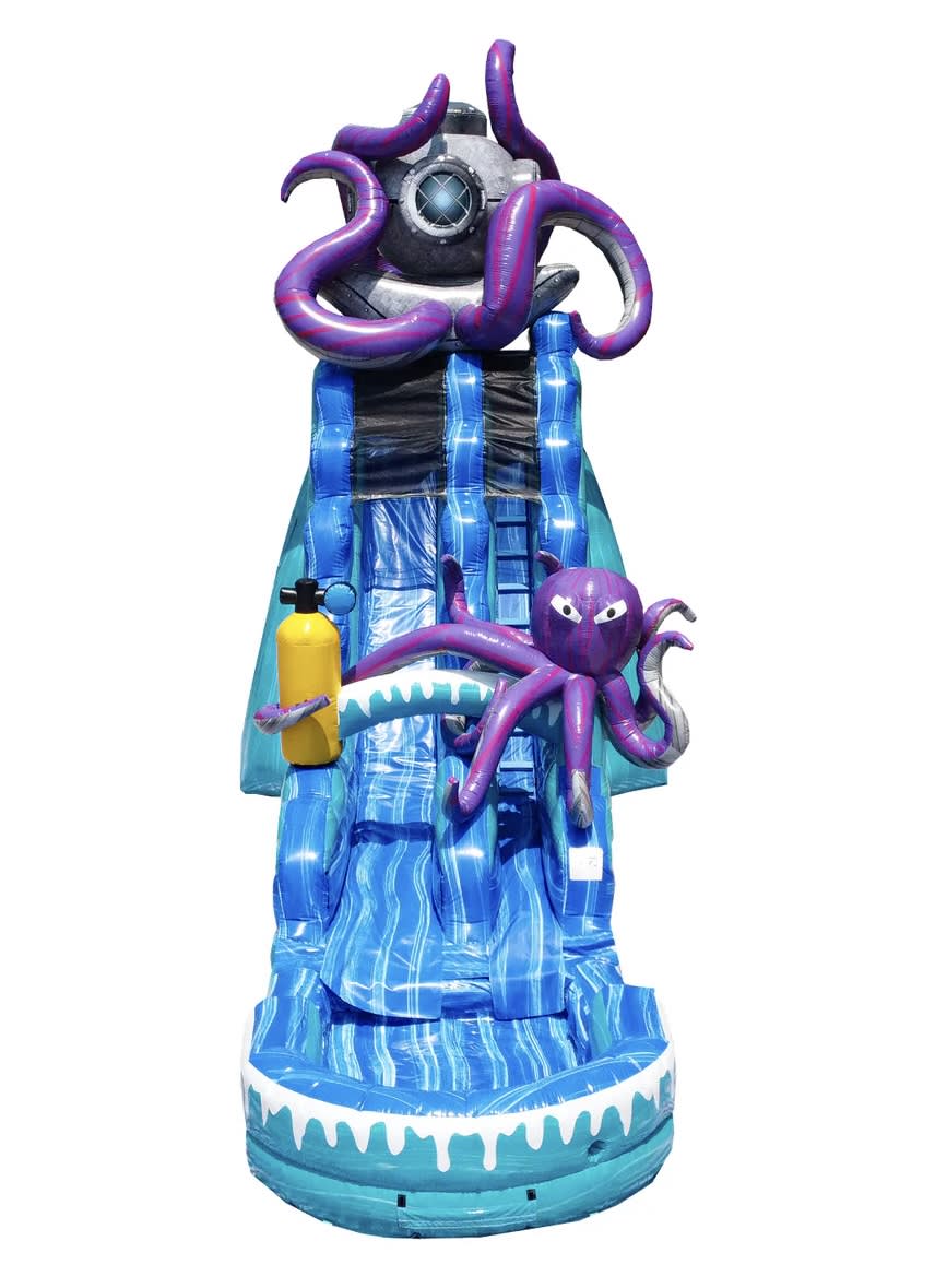 Dive into endless fun and excitement with our Deep Sea 19ft Slide, the ultimate addition to any event or party. Perfect for both adults and kids, this water slide guarantees to bring a wave of joy and adventure to your gathering. Featuring a cool octopus design, it's not just a slide; it's an experience waiting to be discovered!